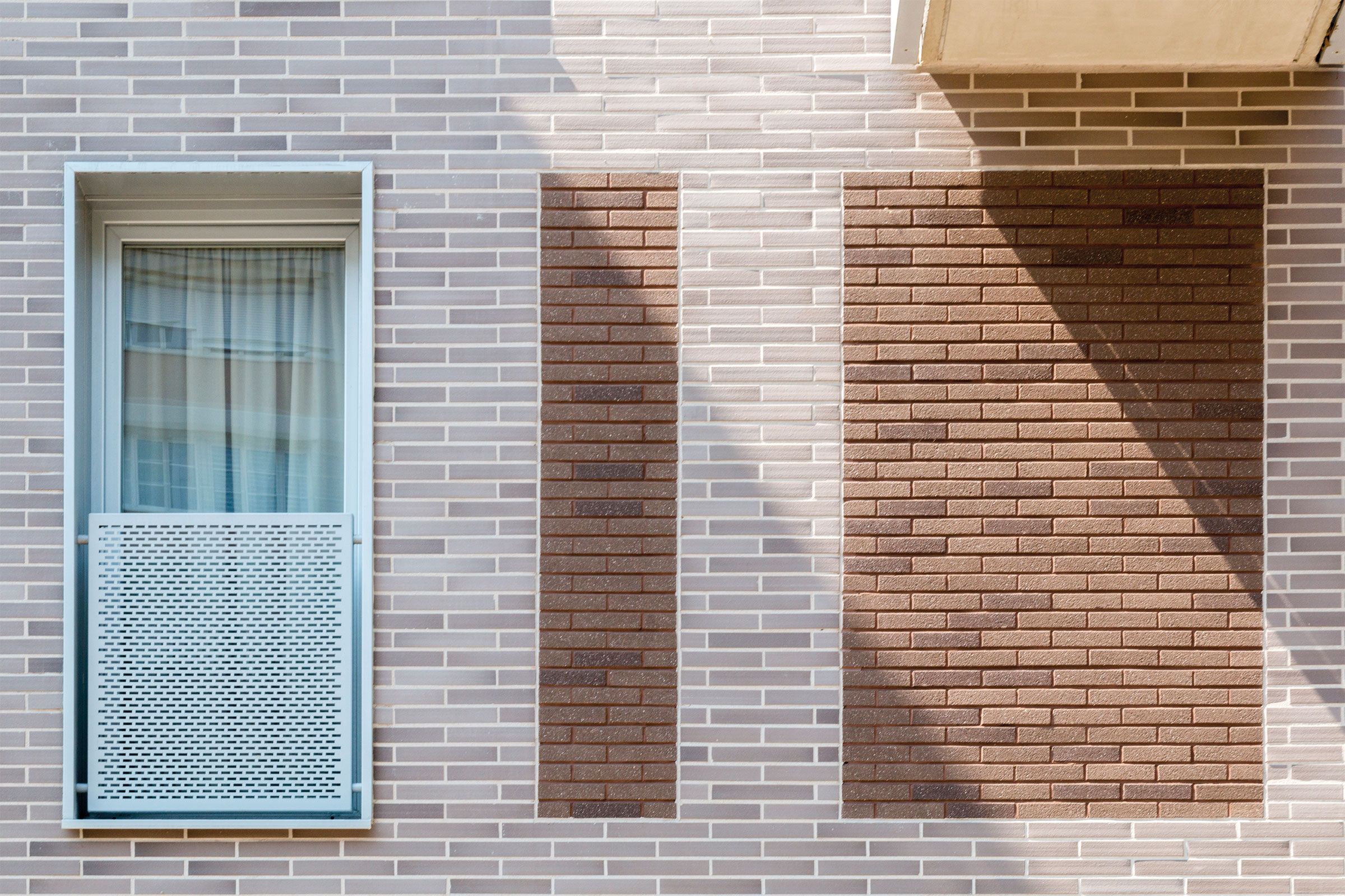 Les plaquettes de terre cuite StoBrick, d’une épaisseur de 14 mm, sont proposées en trois variantes de format : 400 x 35 mm / 400 x 71 mm / 240 x 71mm et proviennet de l'usine Ströher (group sto, Allemagne)