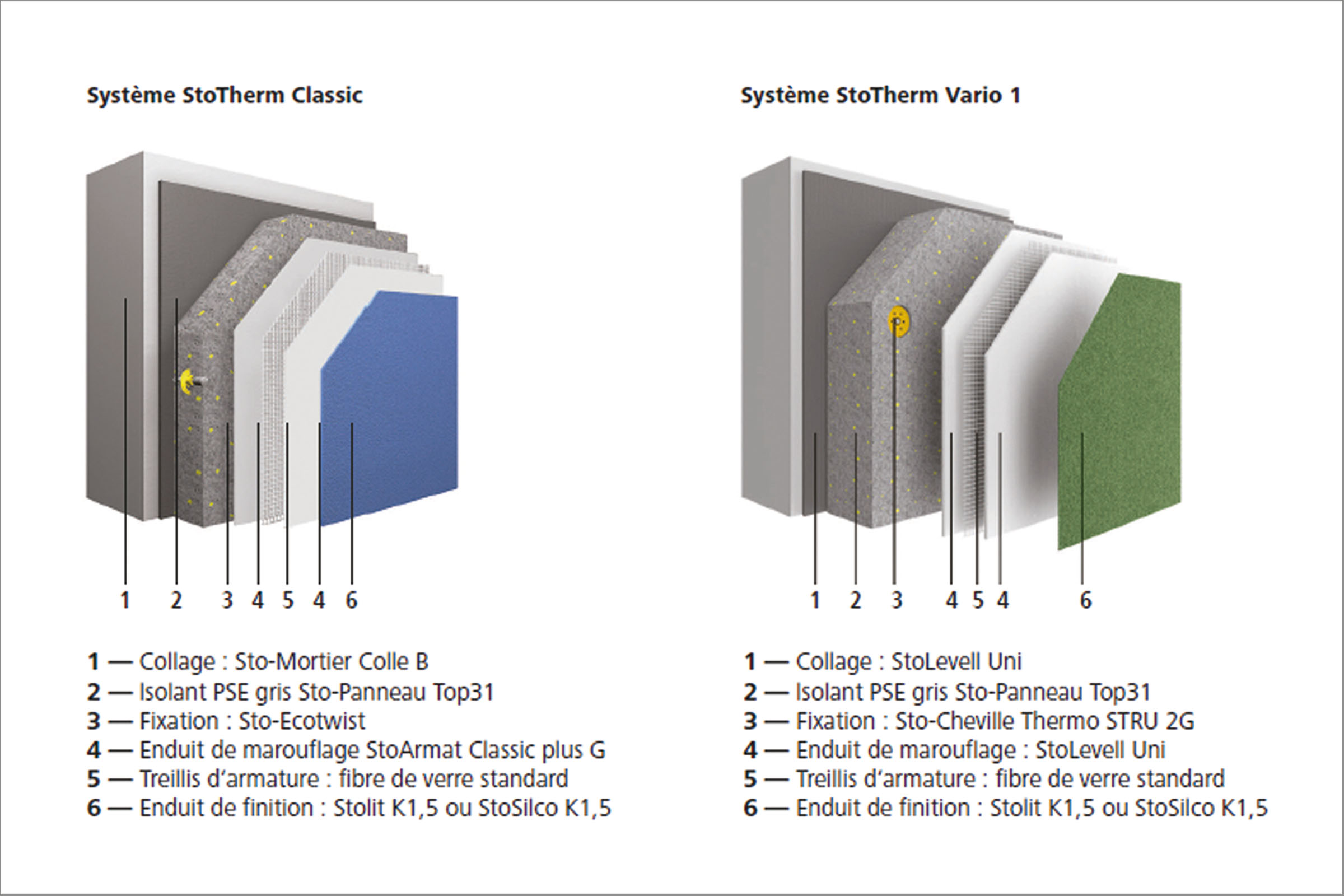 Pour les chantiers d’ITE sous enduit mince en maison individuelle, Sto propose deux systèmes efficaces et complets : StoTherm Classic et StoTherm Vario