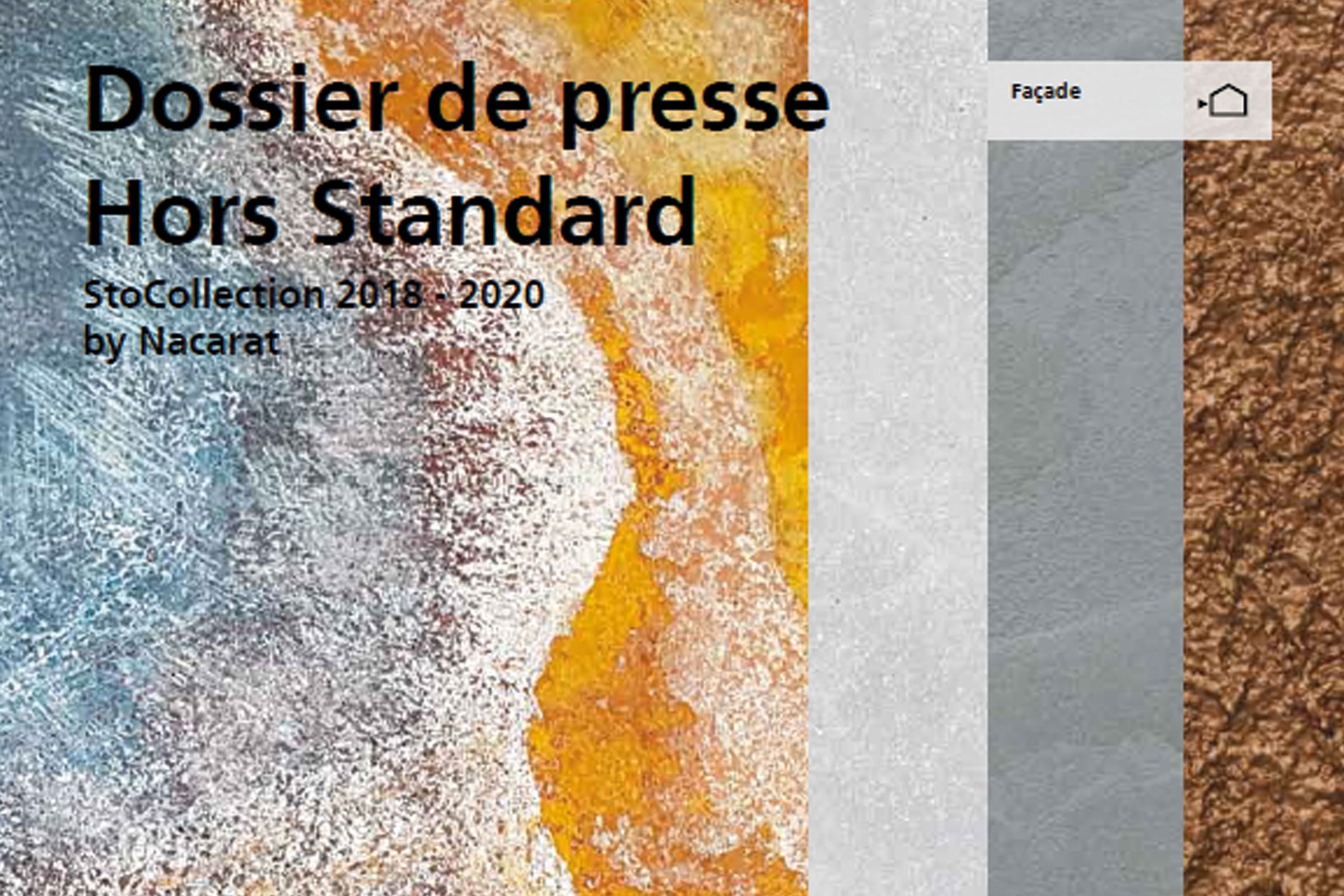 Allier technique et esthétique, élargir son champs d’action et être identifié comme un acteur premium complet sont les ambitions de Sto. Cette initiative originale et audacieuse est une première pour l’industriel, qui a choisi de s’associer à l’agence Nacarat Color Design pour sa conception. Hors Standard s’adresse à tous les architectes et prescripteurs attentifs aux grandes tendances, ainsi qu’à ceux qui souhaitent s’aventurer loin des sentiers battus. "L'enjeu de la marque au travers de cette collection est d'offrir un outil d'inspiration pour les prescripteurs." commente Sabine Strohmann, Responsable du développement esthétique chez Sto, en charge du projet StoCollection.