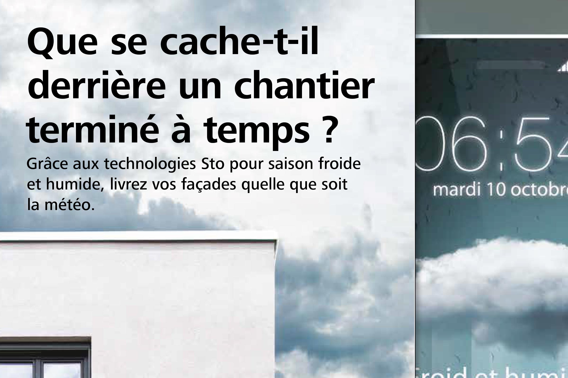 L’été s’éloigne et l’hiver se rapproche à grands pas ! Pour les professionnels de la façade, la saison froide et humide est souvent synonyme de casse-tête pour finir un chantier dans les délais impartis car il faut composer avec les aléas climatiques. Grâce à ses technologies QS (QuickSet) et FastTrack (FT), Sto prolonge la saison façade. Et quoi de mieux pour lancer la période froide et humide qu’une nouvelle solution pour davantage de flexibilité sur les chantiers : l’additif StoAdditiv QS permet désormais de rendre les peintures « Hors d’eau » sur le chantier. Une fois encore, le spécialiste de la façade - isolation thermique par l’extérieur (ITE), produits techniques et d’embellissement des façades, bardage ventilé, met son savoir-faire au service des compagnons pour leur offrir une solution facilitatrice.