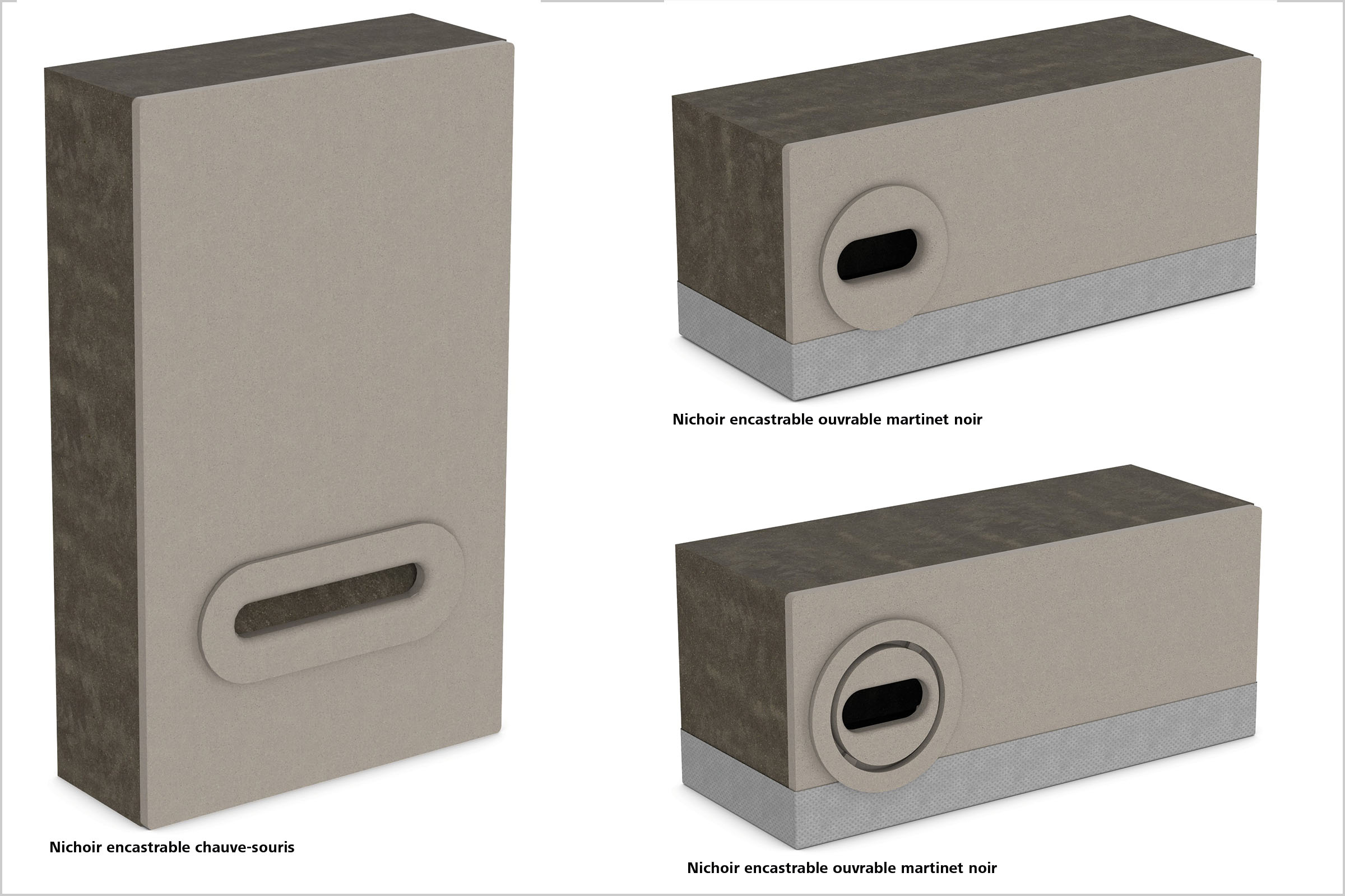 Ils sont ensuite recouverts du même sous enduit et du même enduit que l’ensemble de la façade. L’arrière des nichoirs est isolé de manière à ne générer aucun pont thermique. Le rendu est parfaitement esthétique, seul le petit orifice d’entrée demeure visible.