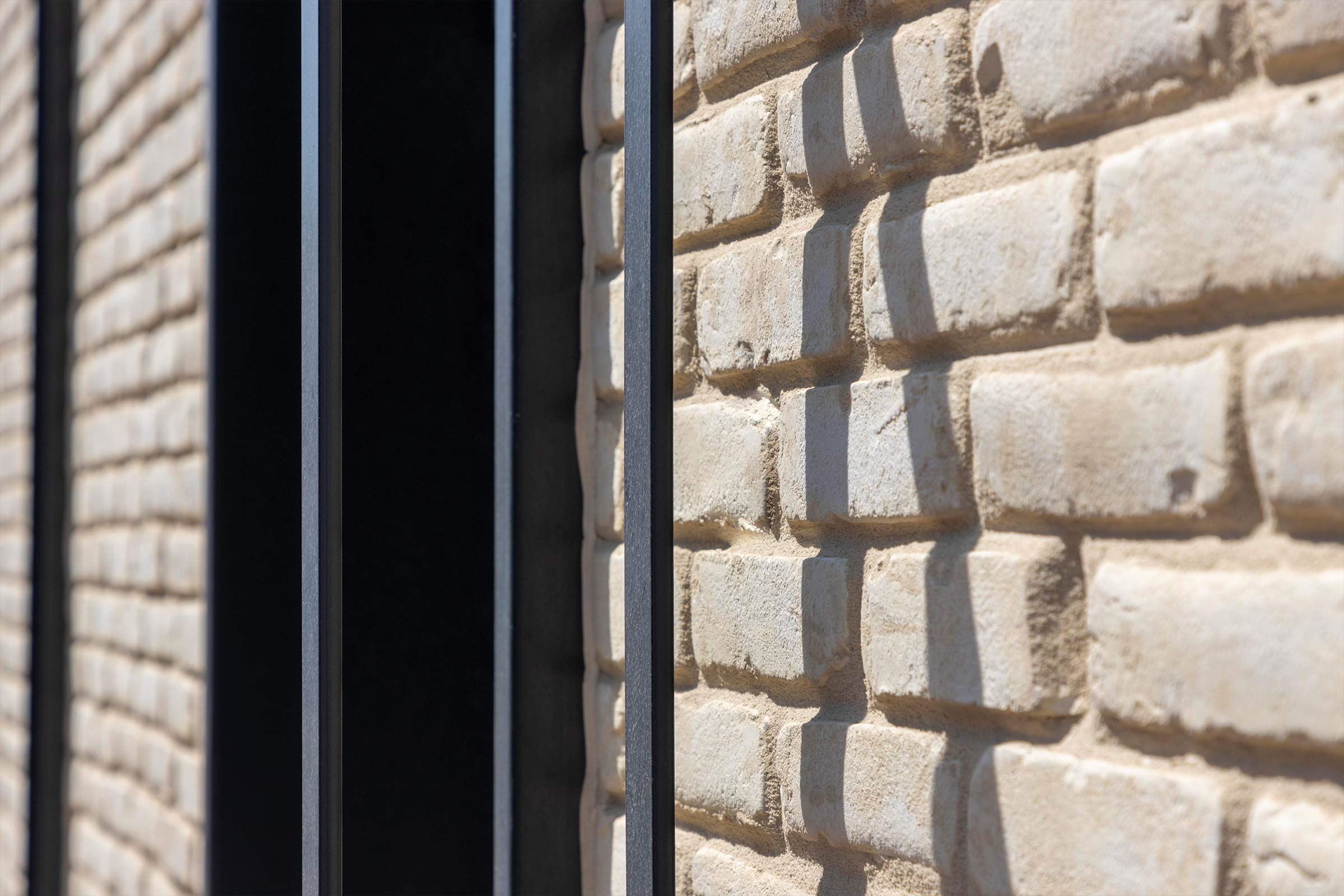 L’entreprise MB Peinture répond à l’appel d’offres et propose une solution différente. Aux panneaux de briquettes préassemblées, elle préfère la solution plus artisanale de pose de plaquettes une à une sur site, sur un système d’isolation thermique par l’extérieur. « Les panneaux préfabriqués sont certes plus rapides à monter mais ils sont aussi plus chers à l’achat, occasionnent plus de chutes et de déchets, et les délais de livraison sont plus longs », argumente Julien Audugé, président de l’entreprise. « En ravalement, poursuit-il, nous utilisons exclusivement des produits Sto. Les systèmes proposés sont sous avis technique, un important staff technique est toujours à notre disposition pour répondre à nos attentes de solutions, les livraisons sont rapides dans toute la France.» Sa préférence va donc naturellement au système StoTherm Brick. L’entrepreneur parvient à convaincre le maître d’ouvrage et l’architecte en réalisant un témoin avec l’aide du service technique de Sto. Mais le maître d’œuvre ne trouve pas les plaquettes correspondant à son choix dans la gamme proposée par l’Avis Technique du procédé StoTherm Brick. Qu’à cela ne tienne, le service technique de Sto est contacté par Julien Cantagalli, le commercial de Sto qui suit l’opération. Un nouvel avis technique est justement en cours d’élaboration, qui propose de nouvelles références de plaquettes offrant plus de couleurs, de textures et de dimensions. Le choix des architectes se portera sur la plaquette vieillie Domus Colombe moulée à la main aux arêtes irrégulières de couleur blanc crème produite par Wienerberger.