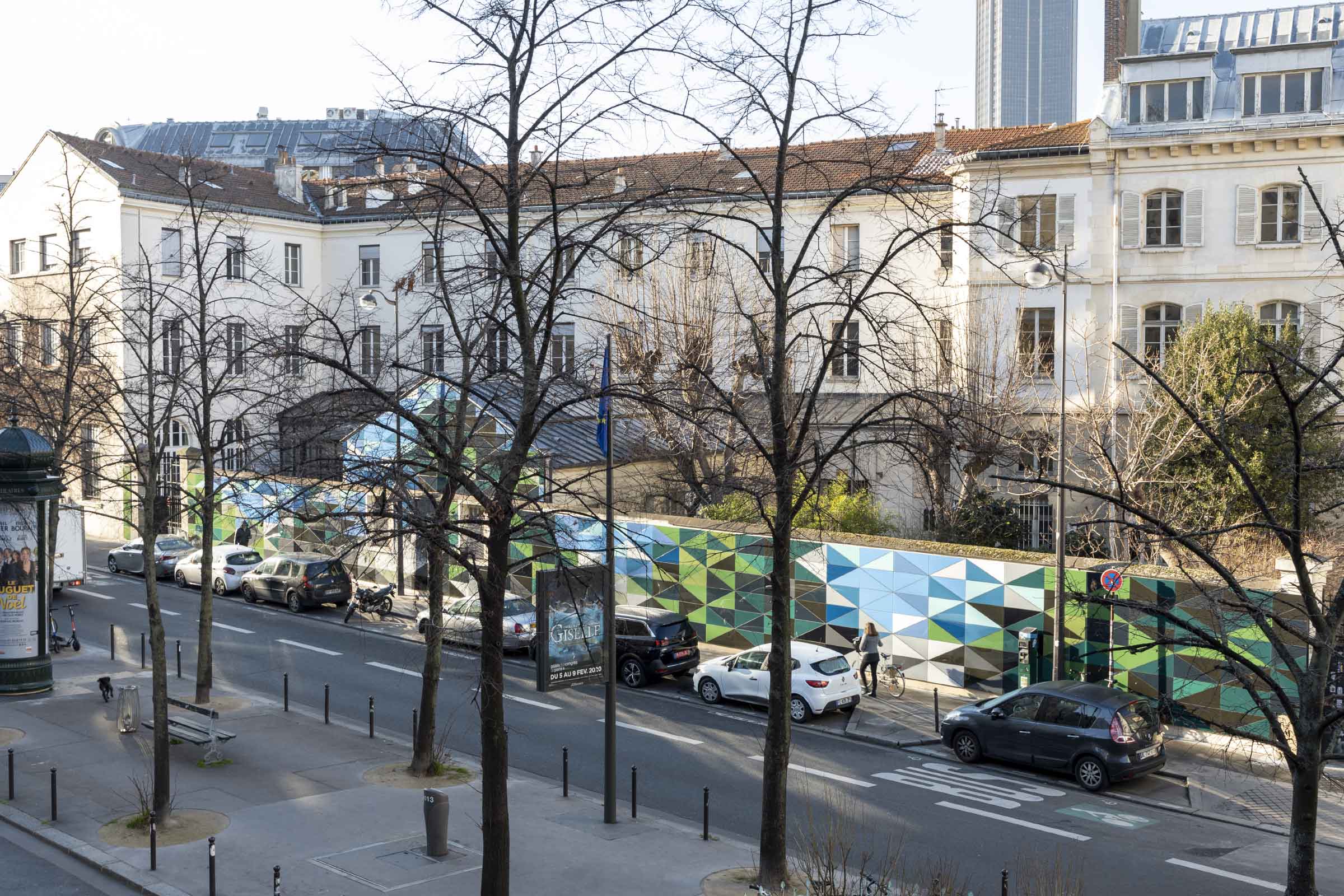 « J’ai cherché à installer de la rêverie au cœur de Paris, ville lumière et ville des rêves. L’œuvre réalisée est encore plus merveilleuse que le dessin du projet qui n’avait pas la profondeur et la subtilité du matériau. Vivement l’été pour que les couleurs de la perspective abstraite réalisée répondent aux couleurs réelles du quartier ! »