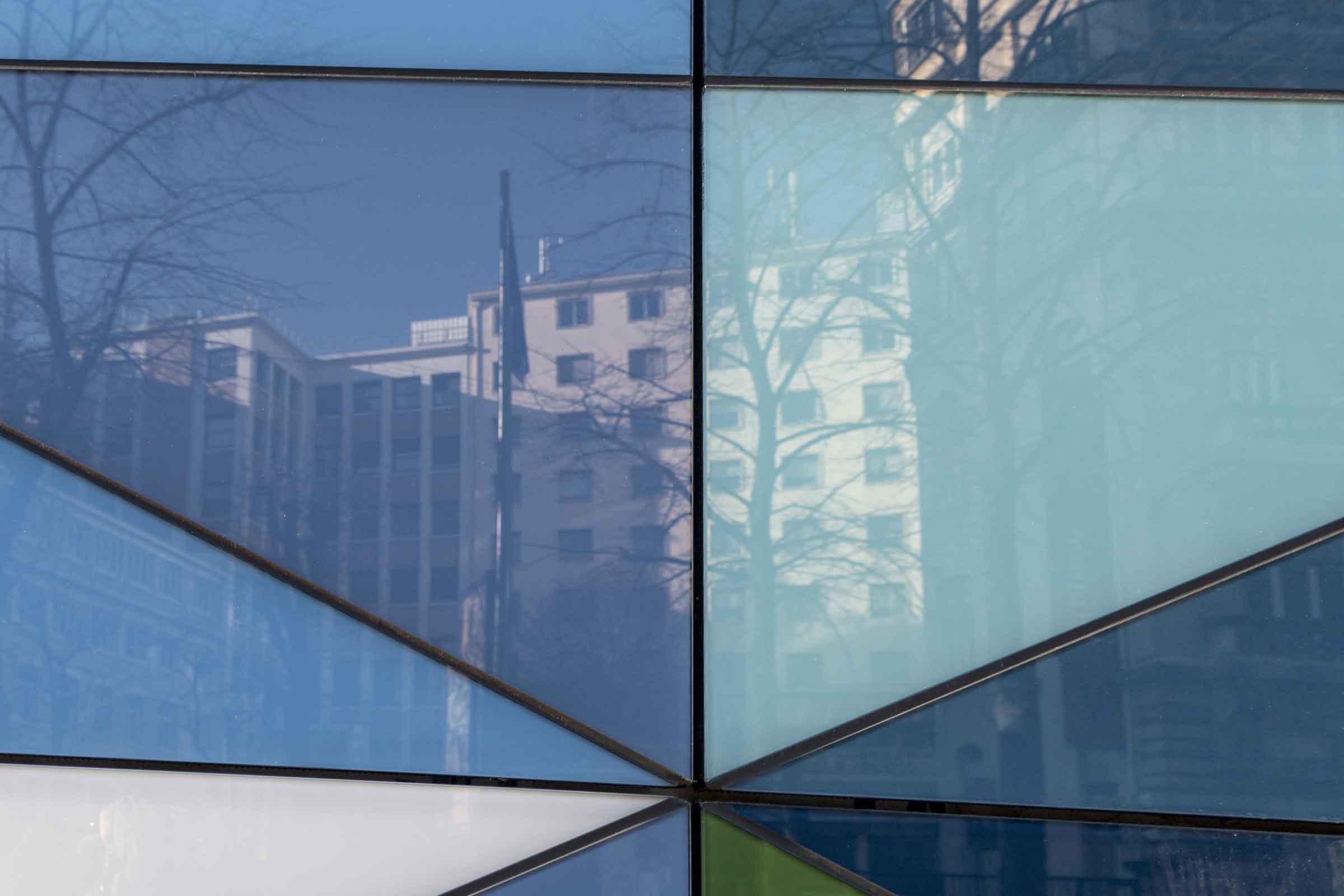 « Dans ce quartier historique, Aldric Beckmann, seul lauréat de l’appel à projets « Embellir Paris » à la fois architecte et artiste, nous offre une composition élégante, élaborée et poétique. Grâce à sa compréhension de l’espace, le mur devient le miroir de son environnement. »