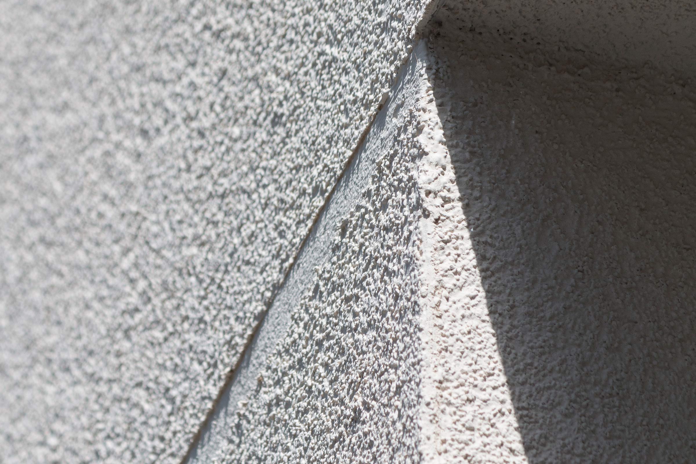 Le chantier démarre à l’automne 2016. Dans le cadre d’un contrat de prévention avec la Caisse d’assurance retraite et de la santé au travail (Carsat), l’entreprise s’équipe de 400 m2 d’échafaudages pourvus d’escaliers extérieurs qui renforcent le confort et la sécurité des compagnons. Après le lavage des façades et la pose des rails de départ, les panneaux de polystyrène sont calés et chevillés sur le support, en respectant la découpe en L autour des angles des fenêtres, comme l’exige le e-cahier 3035 V2 du CSTB qui régit la mise en œuvre des systèmes d’ITE sous enduit. Des bandes coupe-feu de 20 cm en laine de roche ceinturent les bâtiments à chaque niveau au-dessus des fenêtres, conformément à l’Instruction Technique IT 249 relative aux façades. Pour assurer une finition impeccable de la surface, Yahya Dahmani exige que ses applicateurs comblent les joints entre panneaux à la Sto-Mousse Polyuréthane avant un ponçage soigné. Le StoLevell Duo est ensuite mis en œuvre à la taloche. A la demande du maître d’ouvrage, les deux conteneurs qui abritent le stock d’enduit en poudre sont isolés et leur degré hygrométrique contrôlé afin d’éviter toute dégradation de ses qualités.