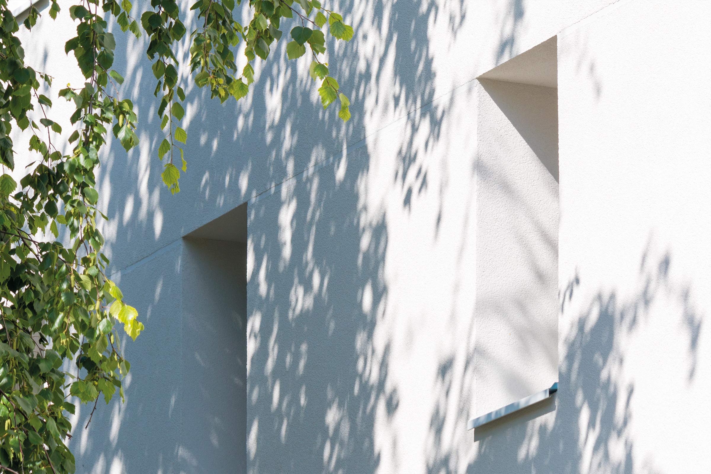 « Nous avons conservé la simplicité de l’architecture d’origine des bâtiments en revêtant chaque bâtiment d’un enduit d’une couleur unique, les quatre teintes claires étant déclinées en dégradé sur les onze bâtiments tout autour du parc. Le soubassement gris anthracite rend les immeubles plus aériens. La seule couleur vive du programme est le bleu azur posé par touches sur quelques appuis de fenêtres, garde-corps et nez de dalles des balcons. »