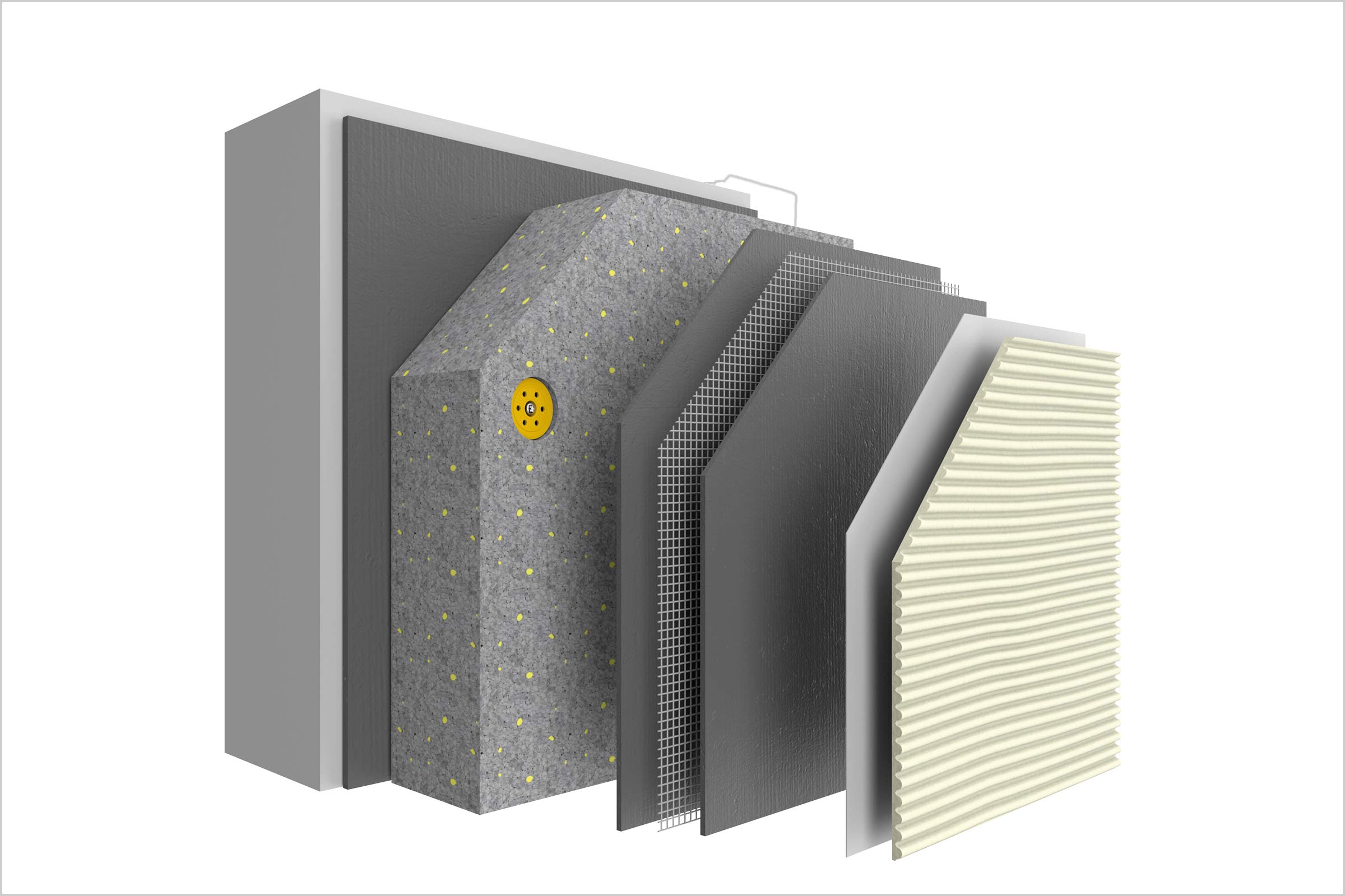 L’appel d’offres public lancé début 2016 est remporté par une jeune entreprise de Dreux, Iso Bat. Créée en 2010 par Yahya Dahmani, elle compte aujourd’hui une trentaine de salariés. Après des premiers chantiers réalisés en sous-traitance, la résidence Jean Moulin est pour Iso Bat l’une des premières opérations réalisées en direct. Et c’est aussi l’un de ses plus gros chantiers. Fidèle aux produits Sto, Yahya Dahmani se voit conseiller par l’industriel le système d’ITE hydraulique StoTherm Vario 4 avec une nouvelle couche de base au catalogue en France mais bien rodée en Allemagne : StoLevell Duo. « Cet enduit minéral en poudre de couleur grise, moins onéreux que les enduits prêts à l’emploi pour une grande surface, permet de coller l’isolant et de maroufler la toile avec le même produit », apprécie le chef d’entreprise. Il a aussi l’avantage d’être un système ouvert au sein des produits Sto : il permet tout type d’enduit de finition. En l’occurrence, le maître d’ouvrage souhaite à Lucé un enduit résistant au verdissement et à l’encrassement afin d’assurer une plus grande longévité des façades. C’est l’enduit de finition organique StoSilco, à base de résine siloxane, qui sera mis en œuvre.